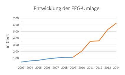 | Keywords: EEG-Entwicklung.svg en Development of the EEG Renewable Energy Act apportionment in Germany after an amendment in 2009 EEG-Umlage mit Hervorhebung der Auswirkung der Verordnung zur Weiterentwicklung des bundesweiten Ausgleichsmechanismus von 2009 own - Die Daten stammen von hier Chstdu 2013-10-28 Energy statistics of Germany Renewable energy statistics of Germany Cc-zero |