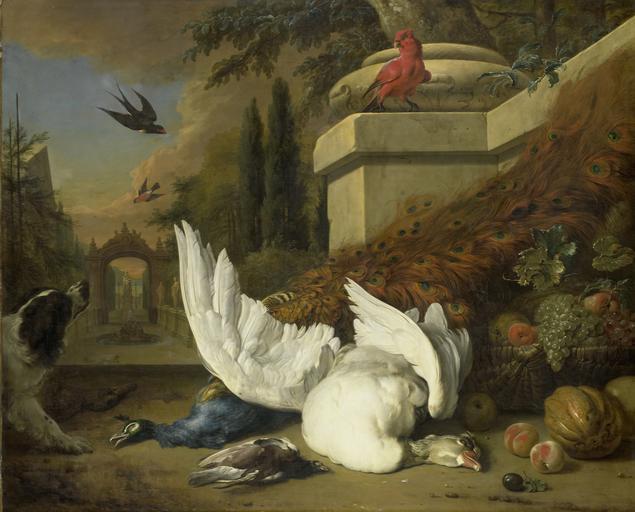 | Keywords: Een hond bij een dode gans en een pauw Rijksmuseum SK-C-264.jpeg accession number SK-C-264 nl Een hond bij een stilleven van gevogelte dode gans en een pauw en fruit druiven meloen perziken en appels Op een balustrade zit een papegaai in de lucht enkele andere vogels Op de achtergrond een laan in ene park of tuin drager Height cm 139 drager Width cm 170 exhibition history 2004-2005 Van der Hoop - C Amsterdam Institution Rijksmuseum Technique oil canvas object history Acquisition 1885-06-30 object type Potential derivatives exist check http //commons wikimedia org/w/index php search Rijksmuseum+SK-C-264 this search PD-US PD-old-100 Data and photography rights All data and all images made available through the API are either in the public domain or are subject to a CC0 license https //www rijksmuseum nl/en/api/terms-and-conditions-of-use cc-zero place of creation http //www rijksmuseum nl/collectie/SK-C-264 Een hond bij een dode gans en een pauw Q17342363 Uploaded with GWToolset Een hond bij een dode gans en een pauw Rijksmuseum SK-C-264 http //www rijksmuseum nl/media/assets/SK-C-264 Images uploaded by Fæ Images from the Rijksmuseum Paintings by Jan Weenix in the Rijksmuseum Amsterdam Jan Weenix Still life paintings |