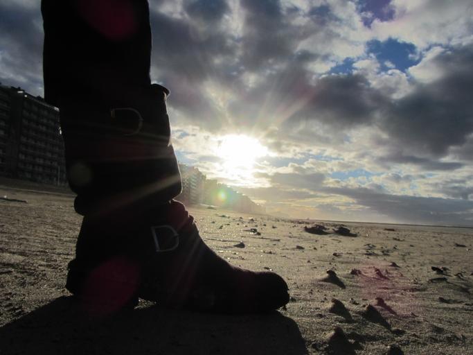 Keywords: effect light sun boot beach belgium evening sand clouds buildings side ankle boot