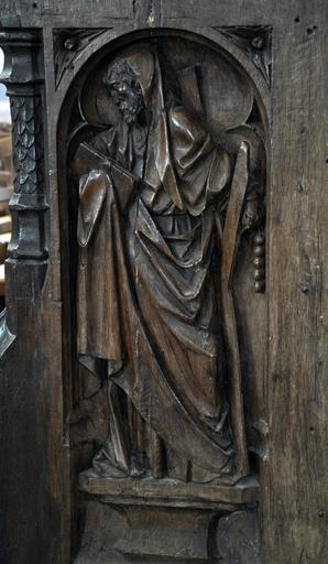 Keywords: Eglise Orbais-l'Abbaye 2011 stalles jouee 5.jpg fr Stalles de l'église Saint-Pierre-et-Saint-Paul à Orbais l'Abbaye sculptées par Jean Huilier et offertes en 1520 par Louis de Bourbon abbé du couvent Une jouée Saint-André own Vassil 2011-02-13 Cc-zero Choir stalls of abbatiale Saint-Pierre d'Orbais-l'Abbaye |