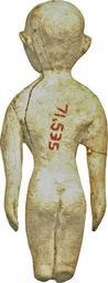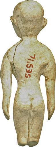Keywords: Egyptian - Female - Walters 71535 - Back.jpg A female figure stands stiffly the shaved head slightly raised The shoulders droop and the hands dangle the fingers indicated by simple grooves Large oval depressions indicate the eyes; the top left eyelid is shown She has a ledgelike left ear full breasts and slender hips with well-shaped buttocks Incised holes mark the public triangle and navel There are many old breaks and repairs and a light area in line over the left arm and throax The lower legs have been broken off mid 4th millennium BC Predynastic Egypt hippopotamus ivory cm 4 8 2 49 0 8 accession number 71 535 15246 MacGregor Collection cat 1922 p 93 no 712 pl XXIV Dikran Kelekian New York and Paris date and mode of acquisition unknown Henry Walters city Baltimore Walters Art Museum Henry Walters Acquired by Henry Walters 1923 place of origin Egypt Walters Art Museum license Egyptian predynastic art in the Walters Art Museum |