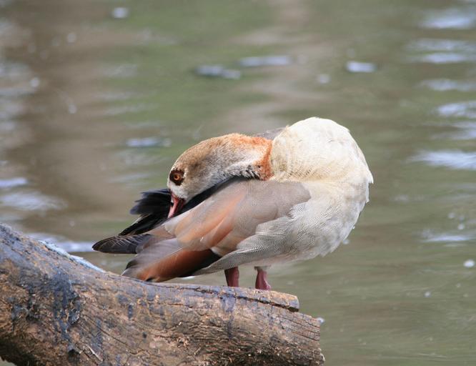 Keywords: egyptian goose goose brown buff neck bent pond water
