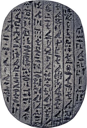 | Keywords: Egyptian - Heart Scarab - Walters 4281 - Bottom.jpg This serpentine scarab has a flat underside with a vertically arranged inscription with the text from spell 30B of the Book of the Dead The back of the scarab has a detailed design with a polished surface and almost balanced proportions The workmanship is good and the piece is carefully made This scarab functioned as an independent user individualized funerary amulet with a renewal connotation and supportive function for the deceased in the Court of the Dead between 1070 736 BC Third Intermediate black-brown serpentine cm 2 7 4 4 6 3 accession number 42 81 27145 Henry Walters Baltimore date and mode of acquisition unknown Walters Art Museum Henry Walters Acquired by Henry Walters Translation Recitation of Osiris the head of beverages depot Pa-en-Ptah / Heart that I received from my mother heart that I received from my mother heart of my different ages do not stand up against / me as witness; do not contradict me in the court; do nothing against me in front of the deities; / do not treat me with hostility in front of the Keeper of the Balance You are my Ka life-force which is in my body; the creator / who makes the limbs of my body whole; you may come out to the beautiful place which is there prepared for me Do not cause my name / to stink in the presence of the members of the court who make people to resurrected at the beautiful place Excellent is it for the posers; a pleasure is it / for the judge Do not speak lies against me beside the great god / See you are elected to exist as a justified one place of origin Egypt Walters Art Museum license Ancient Egyptian scarabs in the Walters Art Museum Hieroglyphs on scarabs Heart scarabs Seth tool hieroglyph Man with staff hieroglyph |