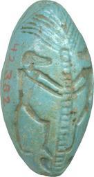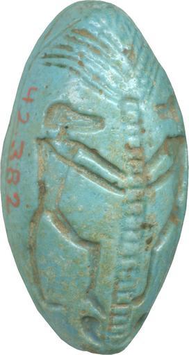 | Keywords: Egyptian - Large Amuletic Bead - Walters 42382 - Top View B.jpg In addition to its original function as a personal seal the scarab became one of the most powerful amulets used by the living and entombed with the dead Countless variations have been preserved differing in design size and material but always associated with eternity and regeneration Some special scarabs have human or ram heads the emblem of the god Amen-Re joined to the body of the beetle Others called scaraboids have the body replaced with that of another animal but retain the general oval shape Rarer items are decorated beads which were part of precious necklaces Some show a palm tree surrounded by monkeys symbolizing the daily rising of the sun god ca 1300 BC New Kingdom steatite with glaze cm 4 37 2 23 0 98 accession number 42 382 6355 Henry Walters Baltimore date and mode of acquisition unknown Walters Art Museum Henry Walters Acquired by Henry Walters Daily Magic in Ancient Egypt The Walters Art Museum Baltimore 2006-2007 Jewelry - Ancient to Modern The Walters Art Gallery Baltimore 1979-1980 place of origin Egypt Walters Art Museum license Ancient Egyptian amulets in the Walters Art Museum Media contributed by the Walters Art Museum needs category review |