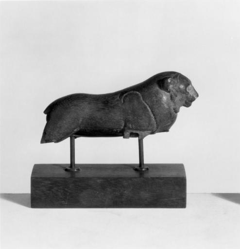 Keywords: Egyptian - Lion Figure - Walters 22247 - Right.jpg The legs and tail of this small lion were originally attached to the body These parts have been lost but the holes for the wooden nails are still visible An incised line marks the mane of the lion The animal's expression with his closed mouth suggests calmness and majesty to demonstrate his relationship to the king and the divine century 2 1 BC Greco-Roman wood technique green paint cm 10 accession number 22 247 14680 Sambon date and mode of acquistion unknown Henry Walters Baltimore 1928 mode of acquistion unknown Walters Art Museum Henry Walters Acquired by Henry Walters 1928 Carved for Immortality The Walters Art Museum Baltimore 2004-2005 place of origin Egypt Walters Art Museum license Ancient Egyptian statuettes in the Walters Art Museum Lions in ancient Egypt Statues of the Ptolemaic dynasty |