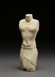 | Keywords: Egyptian - Model Torso - Walters 2232 - Left.jpg Sculpture models such as this example were used by artists in the Ptolemaic and Roman periods This model appears to be complete despite the lack of head arms and lower legs The grid lines on the legs helped to keep the proportions The statue is dressed with a shendit Such models may also have served a votive purpose in a temple setting ca 150 27 BC Greco-Roman limestone cm 17 3 6 2 4 7 accession number 22 32 12670 From Dendera Dikran Kelekian New York and Paris Henry Walters city Baltimore Walters Art Museum Henry Walters Acquired by Henry Walters 1912 place of origin Paris France Walters Art Museum license Ancient Egyptian statues in the Walters Art Museum Media contributed by the Walters Art Museum needs category review |