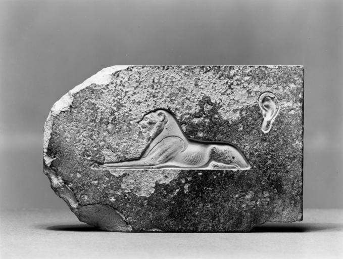 Keywords: Egyptian - Model with a King, Lion and Ear - Walters 22269 - Back.jpg The front of this model is carved in low relief and depicts a king in profile to the left He has a jar in each hand The back is carved in sunk relief and depicts a lion and an ear The piece has three corners broken off and its authenticity is questioned ca 746 335 BC Late Period limestone cm 21 2 accession number 22 269 40595 Dikran Kelekian New York and Paris date and mode of acquisition unknown claimed from Sakkara Henry Walters Baltimore 1923 mode of acquisiton unknown Walters Art Museum Henry Walters Acquired by Henry Walters 1923 place of origin Saqqara Egypt Walters Art Museum license Ancient Egyptian reliefs in the Walters Art Museum Recumbent lion rw hieroglyph Ear hieroglyph Media contributed by the Walters Art Museum needs category review Ancient Egyptian art from Saqqara |