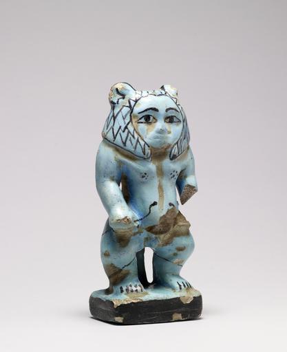 Keywords: Egyptian - Protective Figure of Aha-Bes - Walters 48420 - Three Quarter.jpg Resembling the protective deity Bes this benevolent demon holds a snake in each hand symbolizing his ability to ward off the bites and stings of venomous creatures The figure has the proportions of a dwarf the head mane and tail of a lion and human eyes Similar figures to this one were depicted on magical wands of the Middle Kingdom The details of the figure such as the eyes mane nipples and the snakes are marked with dark blue lines and dots ca 1800 1750 BC Second Intermediate faience with blue glaze cm 17 2 7 6 4 9 accession number 48 420 37996 William MacGregor Tamworth Staffordshire Sale Sotheby Wilkinson Hodge London June 26-29 and July 4-6 1922 Henry Walters city Baltimore Walters Art Museum Henry Walters Acquired by Henry Walters 1922 place of origin Dra abu'l Naga present-day Western Thebes Egypt Walters Art Museum license Ancient Egyptian statuettes in the Walters Art Museum Ancient Egyptian faience in the Walters Art Museum Bes amulet Media contributed by the Walters Art Museum needs category review |