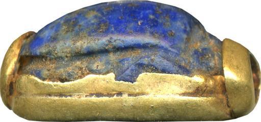 | Keywords: Egyptian - Scarab Ring Bezel - Walters 42388 - Right.jpg  Sheet gold neatly molded across the back and around the edges of a lapis lazuli scarab forms the surface into which finely detailed hieroglyphs are chased A ring of sheet gold was added around the perforations at either end The inscription reads Chiefs of The Priestly Guild of Horus which suggests that the ring was a mark of professional status between 1186 1070 BC late New Kingdom lapis lazuli gold setting cm 0 7 1 1 5 accession number 42 388 34999 Maurice Nahman Cairo date and mode of acquisition unknown Henry Walters city Baltimore Walters Art Museum Henry Walters Acquired by Henry Walters 1930 Translation Leaders of the priestly group phyle of Horus Jewelry - Ancient to Modern The Walters Art Gallery Baltimore 1979-1980 place of origin Egypt Walters Art Museum license Ancient Egyptian scarabs in the Walters Art Museum Ancient Egyptian finger rings in the Walters Art Museum |