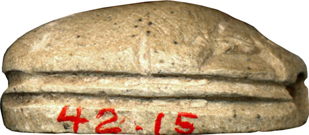 Keywords: Egyptian - Scarab of Sheshi - Walters 4215 - Right.jpg The ancient Egyptians believed that the dung beetle the Scarabaeus sacer was one of the manifestations of the sun god Representations of these beetles were used as amulets and for ritual or administrative purposes This scarab is a typical example of the Second Intermediate Period The highest point of the back is the pronotum dorsal plate of the protorax Two short side-notches at shoulder height define the partition between pronotum and elytron wing cases The prontum is somewhat asymmetrical and the notches which differ in shape and depth are not aligned The head sections consists of a trapezoidal head rectangular eyes trapezoidal side plates with curved outer edges and a clypeus front plate with central base notch The sides of the scarab show no extremities but two deeply incised circular lines which define the partition between the body and the oval shaped base The bottom inscription contains the name and title of the King Sheshi as well as a formula wishing him life The hieroglyphs are deeply carved and somewhat clumsy The layout is somewhat unbalanced and the top and bottom signs collide with the borderline The scarab is longitudinally pierced was originally mounted or threaded and used as an amulet It should secure the existence and divine monarchy for this king and provide its private owner with his royal patronage There are many scarabs with the name of king Sheshi e g Baltimore Walters Art Museum 42 17 and 42 26 which were found in Egypt Nubia and Palestine Nevertheless there are no other monuments or historical records with his name It is possible that the throne name of Sheshi was Maat-ib-Re and scarabs with this name were similar popular and widespread The identification of Sheshi with a Hyksos rulers or one of the Hyksos vassals is likely but not positive Furthermore some scholars considered interpreting the name as a writing variant of the name of the well-known Hyksos ruler Apepi between 1648 1539 BC Second Intermediate; Hyksos light beige steatite originally glazed cm 0 7 1 2 1 6 accession number 42 15 14091 Prof Newberry Henry Walters Baltimore 1911 by purchase Walters Art Museum Henry Walters Acquired by Henry Walters 1911 Translation Birth name of King Sheshi with solar filiations Son of Re Sheshi may he live forever place of origin Palestine Walters Art Museum license Ancient Egyptian scarabs in the Walters Art Museum Sheshi Works of the 15th dynasty of Egypt Hyksos scarabs Scarabs with Wish Formula |