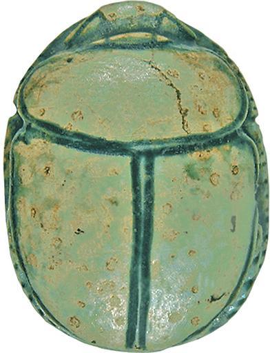 Keywords: Egyptian - Scarab with Bird and Papyrus - Walters 4274 - Back.jpg The ancient Egyptians believed that the dung beetle the Scarabaeus sacer was one of the manifestations of the sun god Representations of these beetles were used as amulets and for ritual or administrative purposes This scarab has a flat bottom with a special design that combines of images and hieroglyphs The layout of the deeply incised design is unusually organized the hieroglyphs face in different directions and some collides with the borderline The dominant icons are a hawk with his outstretched wings and a left rotated pool with the flowers An oval line frames the arrangement It may be possible to interpret the sign combination as cryptographic writing of the royal name Amenhotep The highest point of the back of the scarab is the double partition line between pronotum dorsal plate of the protorax and elytron wing cases Both parts have incised borderlines and a double division line separates the wing cases; the line flow is slightly irregular The semi-oval head is flanked by triangular eyes; the triangular side plates have outer borderlines and the clypeus front plate is marked The head section is very short and the head itself small in comparison to the clypeus The extremities have natural form and diagonal hatch lines for tibial teeth and pilosity hair The oval base is asymmetrical shaped having slightly smaller head part The scarab is longitudinally pierced was originally mounted or threaded and used as an amulet The design should secure the close relation of this king to Amun and provide a private owner with royal patronage of the current king The are several arguments for dating the scarab in the reign of Amenhotep I and not in a later period The figure of the hawk with wide outstretched wings which is popular during the early Thutmoside Period the round-oval shape of the base as well as the clear and simple back design between 1525 1504 BC New Kingdom beige steatite with blue-green glaze cm 0 8 1 3 1 7 accession number 42 74 40707 Henry Walters Baltimore date and mode of acquisition unknown Walters Art Museum Henry Walters Acquired by Henry Walters Translation Amen-hetep place of origin Egypt Walters Art Museum license Ancient Egyptian scarabs in the Walters Art Museum Media contributed by the Walters Art Museum needs category review |