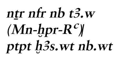 Keywords: Egyptian - Scarab with the Cartouche of Thutmosis III - Walters 4232 - Transcription.jpg The ancient Egyptians believed that the dung beetle the Scarabaeus sacer was one of the manifestations of the sun god Representations of these beetles were used as amulets and for ritual or administrative purposes This scarab has a bottom inscription which consists of three columns framed by an oval line; the central column has a royal cartouche The text contains the name titles and epithets of King Thutmose III The inscription is carved in sunken relief The layout is arranged to fit in the oval frame but the two outer columns are not well balanced and some signs collide with the borderline The shape of the hieroglyphs is slightly rough and the nfr-sign has three instead of two horizontal lines The highest point of the back is partition between pronotum dorsal plate of the prothorax and elytron wing cases Pronotum and elytron display incised borderlines single separation lines and V-shaped marks for the humeral callosities thickenings at the shoulders The borderlines of the elytron ends at the rear in half spirals The proportions of the top are unbalanced the pronotum and head section are short in comparison to the elytron The head has long-oval shape the side plates are irregularly trapezoidal and clypeus front plate shows a central base notch The carved extremities show natural form and vertical hatch lines on the upper sides for the tibial teeth and pilosity hair The symmetrical base has a long-oval shape; and the drill-holes of the scarab are framed The scarab is longitudinally pierced was originally mounted or threaded and functions as an amulet This amulet should ensure for its owner support by the royal authority cartouche of the divine king title Perfect God and all-inclusive protection epithet who reverses the foreign countries The scarab was produced after the death of King Thutmose III who was most probably understood as a protective god and successful model of divine kingship The change of the royal title nb t3 wj Lord of the Two Lands to nb t3 w Lord of the Lands may be either a writing mistake or a variant to make the title match to the plural form in the epithet formula all foreign countries The esthetical balance of the signs four horizontal signs at each side of the cartouche may have played a role also between 1292 1186 BC New Kingdom light beige steatite with green-blue glaze cm 0 9 1 5 1 9 accession number 42 32 6551 Henry Walters Baltimore date and mode of acquisition unknown Walters Art Museum Henry Walters Acquired by Henry Walters Translation The Perfect God the Lord of the Lands / Men-kheper-Re / who reverses the foreign countries Secret Signs Egyptian Writing The Walters Art Museum Baltimore 2003-2004 place of origin Egypt Walters Art Museum license 2D Ancient Egyptian scarabs in the Walters Art Museum Hieroglyphs on scarabs Media contributed by the Walters Art Museum needs category review |