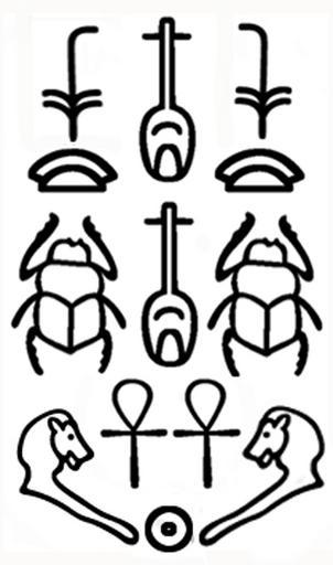 | Keywords: Egyptian - Scarab with Script Signs - Walters 4212 - Impression.jpg This steatite scarab was originally glazed It has a flat underside with a vertically arranged bottom design with a combination of seven different script signs six of which appear twice The design of the scarab's back is simple with short aligned side-notches and well balanced proportions The piece is simply made and the workmanship is good This multifunctional amulet should provide royal and divine support good luck life renewal and protection The double presence of the six signs refers to the creation and the single sun disc to the creator The amulet should protect and support its owner in all different situations The piece was originally mounted or threaded Scarabs displaying hieroglyphic sign arrangements without syntactical context are typical for the late Middle Kingdom and the Hyksos Period ca 1794 1539 BC late Middle Kingdom-Second Intermediate; MB IIB light beige steatite cm 0 8 1 1 1 7 accession number 42 12 28134 Henry Walters Baltimore 1911 mode of acquisition unknown Walters Art Museum Henry Walters Acquired by Henry Walters 1911 Translation The combination has seven different hieroglyphic signs of which six appear twice only the sun disc is not repeated The terms are King - appearance perfection/good luck come into being beginning - life Re life - beginning place of origin Egypt Walters Art Museum license 2D Ancient Egyptian scarabs in the Walters Art Museum Hieroglyphs on scarabs |