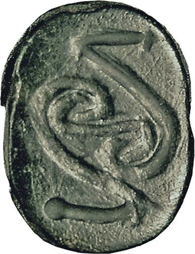 Keywords: Egyptian - Scarab with Spiral Scrolls - Walters 42391 - Bottom.jpg This steatite scarab has a flat underside with a vertically arranged bottom design of symmetrical spiral scrolls The design of the back is simple the proportions of the top are almost balanced and the workmanship of the piece is slightly rough This scarab functioned as an amulet with a regenerative connotation It was originally mounted or threaded ca 1648 1539 BC Second Intermediate; Hyksos; late MB IIB black-green steatite cm 0 7 1 1 3 accession number 42 391 9103 Henry Walters Baltimore date and mode of acquisition unknown Walters Art Museum Henry Walters Acquired by Henry Walters place of origin Palestine Walters Art Museum license Ancient Egyptian scarabs in the Walters Art Museum Hyksos scarabs Media contributed by the Walters Art Museum needs category review |