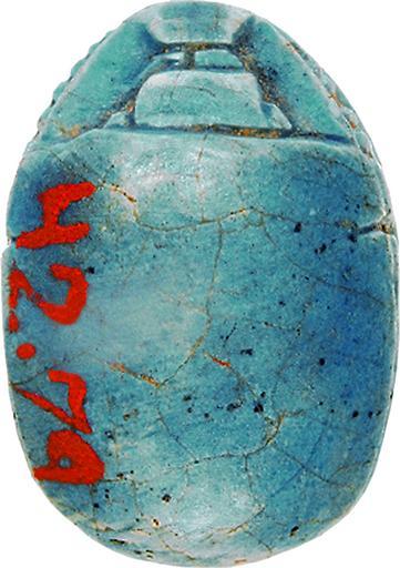 | Keywords: Egyptian - Scarab with Unification Image - Walters 4279 - Back.jpg This steatite scarab has a flat underside with a vertically arranged bottom design combining the 'unification of the Two Lands' icon with a basket The design of the scarab's back is simple with unbalanced proportions and heavy extremities The piece is simply made and the workmanship is slightly rough This scarab functioned as a funerary amulet and should secure for its owner renewal and royal protection It would have originally been mounted or threaded ca 1648 1539 BC Second Intermediate; Hyksos; late MB IIB beige steatite with light blue glaze cm 0 8 1 2 1 7 accession number 42 79 18783 Henry Walters Baltimore 1929 mode of acquisition unknown Walters Art Museum Henry Walters Acquired by Henry Walters 1929 Inscription Combination of a sm3-t3 wj-icon unification of the Two Lands and a nb-basket; framed by an oval line place of origin Palestine Walters Art Museum license Ancient Egyptian scarabs in the Walters Art Museum Hyksos scarabs Media contributed by the Walters Art Museum needs category review |