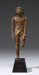 Keywords: Egyptian - Standing Male Figure - Walters 2228.jpg This figure has been carved in the round and painted He has short hair plain black His arms are joined at the shoulders his right hand is open his left is clenched with a hole Hw has a white belt tied at the front There is a pin set into the front above the belt His left leg is broken at the knee his right foot is made separately and is gone There is a prong under his right heel inset into the base between 2119 1793 BC Middle Kingdom wood with red black and white paint H above base cm 14 7 accession number 22 28 25022 MacGregor date and mode of acquisition unknown Dikran Kelekian New York and Paris date and mode of acquisition unknown Henry Walters Baltimore 1923 mode of acquisition unknown Walters Art Museum Henry Walters Acquired by Henry Walters 1923 Label Old label 4707 H09 place of origin Egypt Walters Art Museum license Ancient Egyptian statues in the Walters Art Museum Statues of the Egyptian Middle Kingdom |