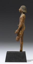 Keywords: Egyptian - Standing Male Figure - Walters 2228 - Left Side.jpg This figure has been carved in the round and painted He has short hair plain black His arms are joined at the shoulders his right hand is open his left is clenched with a hole Hw has a white belt tied at the front There is a pin set into the front above the belt His left leg is broken at the knee his right foot is made separately and is gone There is a prong under his right heel inset into the base between 2119 1793 BC Middle Kingdom wood with red black and white paint H above base cm 14 7 accession number 22 28 25022 MacGregor date and mode of acquisition unknown Dikran Kelekian New York and Paris date and mode of acquisition unknown Henry Walters Baltimore 1923 mode of acquisition unknown Walters Art Museum Henry Walters Acquired by Henry Walters 1923 Label Old label 4707 H09 place of origin Egypt Walters Art Museum license Ancient Egyptian statues in the Walters Art Museum Media contributed by the Walters Art Museum needs category review |