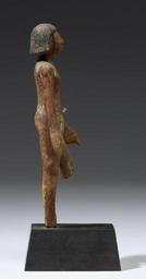 Keywords: Egyptian - Standing Male Figure - Walters 2228 - Right Side.jpg This figure has been carved in the round and painted He has short hair plain black His arms are joined at the shoulders his right hand is open his left is clenched with a hole Hw has a white belt tied at the front There is a pin set into the front above the belt His left leg is broken at the knee his right foot is made separately and is gone There is a prong under his right heel inset into the base between 2119 1793 BC Middle Kingdom wood with red black and white paint H above base cm 14 7 accession number 22 28 25022 MacGregor date and mode of acquisition unknown Dikran Kelekian New York and Paris date and mode of acquisition unknown Henry Walters Baltimore 1923 mode of acquisition unknown Walters Art Museum Henry Walters Acquired by Henry Walters 1923 Label Old label 4707 H09 place of origin Egypt Walters Art Museum license Ancient Egyptian statues in the Walters Art Museum Media contributed by the Walters Art Museum needs category review |