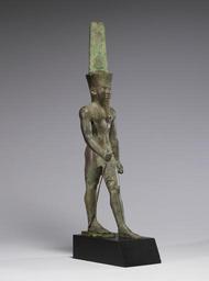 Keywords: Egyptian - Statue of Amun-Re - Walters 54413 - Three Quarter Right.jpg Amun was one of the most important deities in ancient Egypt He was worshiped at Thebes in southern Egypt from the beginning of the Middle Kingdom 2046 BC The Egyptians considered him to be King of the Gods and divine father of the pharaoh He was also worshiped in Nubia and was the principal god of the Kushite empire in present-day Sudan The style of the figure clarifies that it was made when the Kushites ruled both Egypt and Nubia The god wears his characteristic feather-crown combined with the solar disk of the sun-god Re The attributes he would originally have held were probably the symbols for prosperity was and life ankh ca 680 640 BC Late Period bronze alloy remains of gilding and glass inlay cm 47 6 10 2 13 7 accession number 54 413 32904 Dikran Kelekian New York and Paris Henry Walters city Baltimore Walters Art Museum Henry Walters Acquired by Henry Walters 1911 place of origin Karnak Egypt Walters Art Museum license Ancient Egyptian statues in the Walters Art Museum Statues of the Egyptian late period Statues of Amun-Ra Media contributed by the Walters Art Museum needs category review |