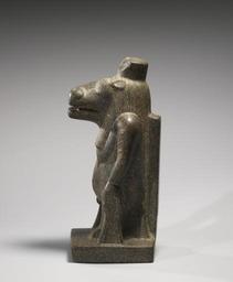 | Keywords: Egyptian - Statue of Taweret - Walters 22223 - Left.jpg  Ancient Egyptians believed the goddess Taweret whose name translates as the Great One offered protection to women during pregnancy and childbirth She is represented as a hippopotamus with a swollen belly pendulous human breasts the limbs of a lion and the back and tail of a crocodile Taweret was a benevolent deity and was commonly depicted on amulets Underscoring her function as a protector she holds the hieroglyph sa meaning protection in each hand the cartouches on her shoulders were added at a later date and have so far escaped a definitive reading Although her cult gained great importance she had no temples of her own ca 180 100 BC Greco-Roman red granite cm 53 21 23 accession number 22 223 6873 Dr Eddé Alexandria Egypt Eddé Collection Sale Hôtel Drouot Paris May 31-June 2 1911 no 525 Henry Walters Baltimore date of acquisition unknown by purchase Walters Art Museum 1931 by bequest Acquired by Henry Walters place of origin Xoïs in present-day Egypt Walters Art Museum license Ancient Egyptian statues in the Walters Art Museum Statues of Taweret |