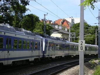Keywords: Ehem. Bahnstation St. Veit an der Wien - 3.JPG en An S-Bahn rapid transit train on its way to Unter-Purkersdorf Western Railway on the Verbindungsbahn connecting Southern and Western Railways within Vienna passing through the former station area St Veit an der Wien near Hietzinger Hauptstrasse 13th municipal district de Ein S-Bahn-Zug nach Unter-Purkersdorf an der Westbahn passiert auf der Wiener Verbindungsbahn zwischen Süd- und Westbahn die ehemalige Station St Veit an der Wien nahe Hietzinger Hauptstraße own Wolfgang J Kraus 2010-06-04 Train stations in Vienna Disused train stations in Austria Unter Sankt Veit ÖBB 4020 Donauländebahn |
