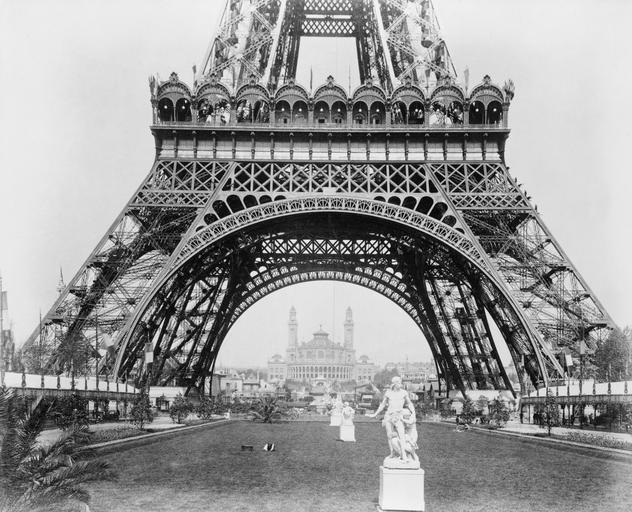 Keywords: eiffel tower vintage paris retro europe landmark romantic historic world exposition history construction monochrome black and white