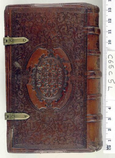 | Keywords: Ein new Christliches ... Betbuchlein. - Lower cover (c65c5).jpg Style Religious miscellaneous; Caption Lower cover; Colour Brown; Edge Unspecified exhibition history Decorative Technique Blocked in blind Tooled in blind; Cover Material Calf Two pairs of clasps Sewn on 3 double bands and 2 half bands object history Text 1587; Magdeburg; Unspecified object type Cc-zero place of creation Binding Germany place of discovery Unspecified British Library image http //www bl uk/catalogues/bookbindings/LargeImage aspx RecordId 020-000007388 ImageId ImageId 43299 Copyright BL Ein new Christliches Betbuchlein Uploaded with GWToolset Ein new Christliches Betbuchlein - Lower cover c65c5 http //www webarchive org uk/bldatasets/bindings/7825_4 jpg Bookbinding 16th-century bookbinding British Library Bookbindings |