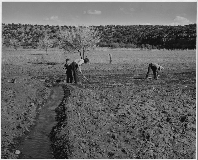 | Keywords: El Cerrito, San Miguel County, New Mexico. The staple crops in El Cerrito are corn, beans and alfal . . . - NARA - 521201.tif Scope and content Full caption reads as follows El Cerrito San Miguel County New Mexico The staple crops in El Cerrito are corn beans and alfalfa Almost everything is grown on irrigated land although there are a few fields on the mesa where a certain amount of dry farming is carried on Most of the corn is of the native blue type which was first grown here by the Indians Some of the other types of corn are fed to stock but never the blue Alfalfa produces more feed per acre than any other plant and for this reason more than half the irrigated land is devoted to this crop There is little commercial farming in the village A few sacks of beans or bushels of peaches are sold each year and two families have small flocks of sheep which brings in a little money - but for the most part the emphasis here is on subsistence farming Food is produced for home consumption Even the livestock economy is at the subsistence level with each family owning one or two horses a cow or steer eight or ten chickens and perhaps a pig Money when there is any comes from outside work Irrigating one of the valley fields Onion sets are being planted here General notes 521201 Local identifier 83-G-37849 Department of Agriculture Bureau of Agricultural Economics Division of Economic Information ca 1922 - ca 1953 NARA-Author Rusinow Irving Photographer 5307166 <br /> Still Picture Records Section Special Media Archives Services Division NWCS-S National Archives at College Park 8601 Adelphi Road College Park MD 20740-6001 1941 04 10 - 1941 04 16 Record group Record Group 83 Records of the Bureau of Agricultural Economics 1876 - 1959 Record group ARC 412 Photographic Prints Documenting Programs and Activities of the Bureau of Agricultural Economics and Predecessor Agencies compiled ca 1922 - ca 1947 documenting the period ca 1911 - ca 1947 Series ARC 521048 File unit File unit ARC Variant control numbers NAIL Control Number NWDNS-83-G-37849 yes Other versions <gallery> File El_Cerrito _San_Miguel_County _New_Mexico _The_staple_crops_in_El_Cerrito_are_corn _beans_and_alfal_ _ _ _-_NARA_-_521201 tif tif File El_Cerrito _San_Miguel_County _New_Mexico _The_staple_crops_in_El_Cerrito_are_corn _beans_and_alfal_ _ _ _-_NARA_-_521201 jpg jpg </gallery> NARA-cooperation PD-USGov Irving Rusinow El Cerrito New Mexico NARA TIF images with categorized JPGs |