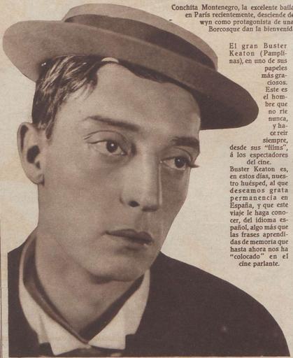 | Keywords: El gran Buster Keaton (Pamplinas) (1930).png es Descripción original de la revista El gran Buster Keaton Pamplinas en uno de sus papeles más graciosos Este es el hombre que no ríe nunca y hace reír siempre desde sus films á los espectadores del cine Buster Keaton es en estos días nuestro huésped al que deseamos grata permanencia en España y que este viaje le haga conocer del idioma español algo más que las frases aprendidas de memoria que hasta ahora nos ha colocado en el cine parlante 1930-08-24 Crónica magazine Madrid 24 August 1930 year 2 number 41 digitized by the Biblioteca Nacional de España http //hemerotecadigital bne es/issue vm id 0003265715 Crónica magazine Custom license marker 2013 10 04 PD-old PD-1996 Buster Keaton 1930 in Spain Uploaded with UploadWizard Files uploaded by Diego Grez-Cañete Crónica Madrid people |