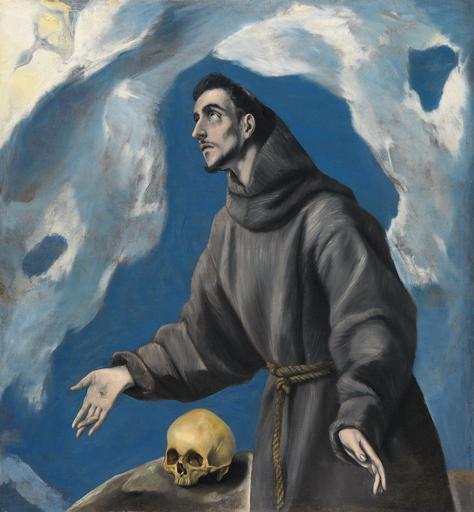 | Keywords: El Greco - St. Francis (National Gallery of Ireland).jpg  Artwork Creator El Greco between 1590 1595 Oil on canvas size cm 114 104 National Gallery of Ireland object history credit line Presented Sir Hugh Lane 1914 accession number NGI 658 http //onlinecollection nationalgallery ie/view/objects/asitem/People 811/0 National Gallery of Ireland online collection PD-old-100-1923 DEFAULTSORT El Greco; Saint Francis; NGI Francis of Assisi by El Greco Paintings in the National Gallery of Ireland Stigmatisation of Francis of Assisi by El Greco 1590s oil on canvas paintings 1590s paintings from Spain 16th-century paintings of Francis of Assisi Paintings of males with skulls Men looking up in art |