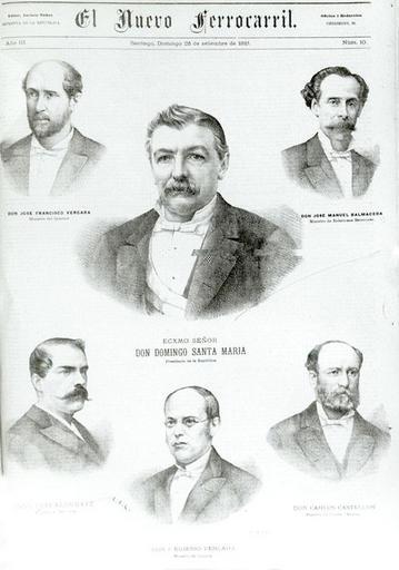 | Keywords: El nuevo ferrocarril Sta. Maria.jpg es Gabinete del Presidente de Chile Domingo Santa María http //www memoriachilena cl/temas/documento_detalle asp id MC0008112 El Nuevo ferrocarril Santiago Impr La Estrella 1879-1881 3 v El Nuevo ferrocarril año 3 n° 10 25 de septiembre de 1881 PD-old PD-Chile DEFAULTSORT Santa Maria Domingo Domingo Santa Maria Jose Manuel Balmaceda Newspapers of Chile Newspaper front pages | ||||