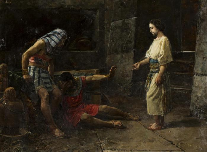 | Keywords: El sueño de José, de Mariano Barbasán (Museo de Zaragoza).JPG La obra inspirada en un pasaje del Génesis muestra a José uno de los doce hijos del patriarca Jacob explicando a un panadero y al copero del faraón el significado de los sueños que habían tenido mientras dormían 1888 oil on canvas Size cm 118 86 Institution Museo de Zaragoza http //ceres mcu es/pages/Main object history exhibition history credit line accession number 10118 http //ceres mcu es/pages/Main PD-old-100 Paintings of the Dream of Joseph Paintings of Joseph son of Jacob in Spain 19th-century paintings of Joseph son of Jacob Paintings by Mariano Barbasán in the Museo de Zaragoza 19th-century paintings in the Museum of Zaragoza |