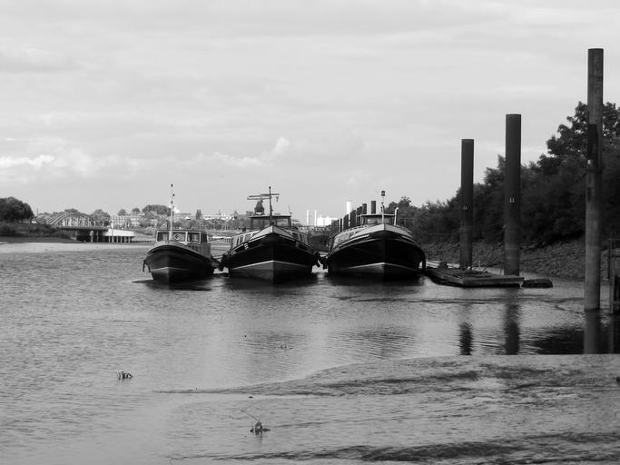 Keywords: elbe hamburg ebb berliner bank barges triple pack lie reede wait evening light
