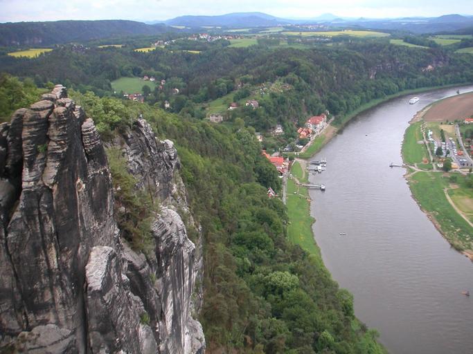Keywords: elbe river ship shipping panorama elbe sandstone mountains rock rathen spa saxony