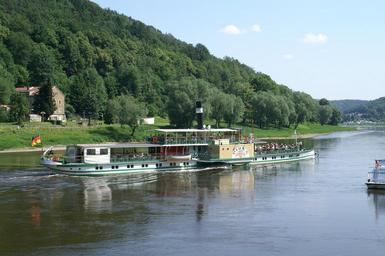 Keywords: elbe river steamer elbe sandstone mountains shipping riverside forest trees green boat park