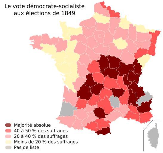 | Keywords: Elections de mai 1849.svg fr Le vote démocrates-socialistes aux élections législatives de mai 1849 Travail personnel d'après J Bouillon Les démocrates-socialistes aux élections de mai 1849 Revue Française de Science Politique VI I janvier-mars 1956 Romain0 07 02 2011 Cc-zero Election maps of France 1849 SVG election maps of France National Legislative Assembly French Second Republic | ||||