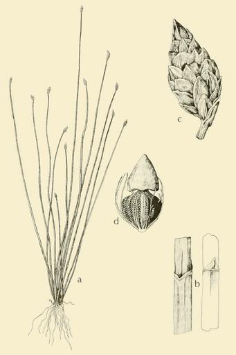 | Keywords: Eleocharis tuberculosa AWP-SW.png en Eleocharis tuberculosa - Long-tubercled spike-rush - Fig 186 a habit about X 1/2; b sheath about X 5' spikelet about X 8; d achene about X 15 Courtesy of R K Godfrey 1972-01 Aquatica and Wetland Plants of the Southwestern United States Donovan S Correll and Helen B Correll Environmental Protection Agency Research and Monitoring Jan 1972 other versions PD-USGov Eleocharis tuberculosa Aquatic and wetland plants of southwestern United States | ||||