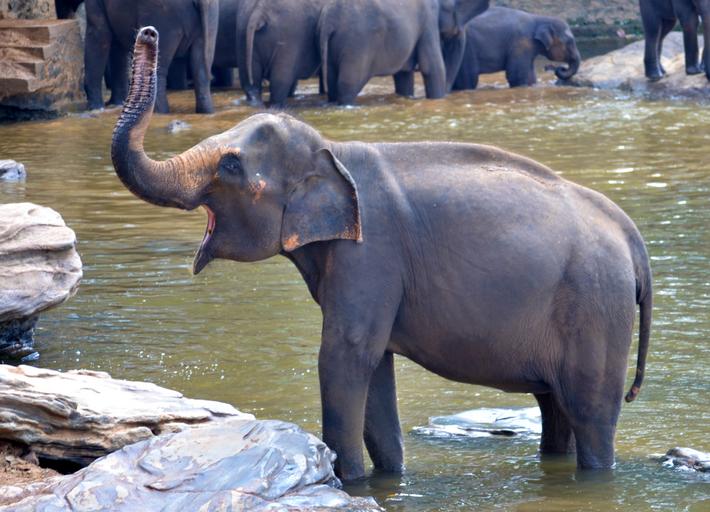 Keywords: elephant bath elephant pregnant elephant bathing elephant female elephant shouting sri lanka ceylon pinnawala elephant orphanage