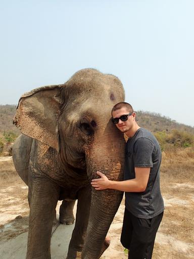 Keywords: elephant boy thailand nature animal wild field dry land summer