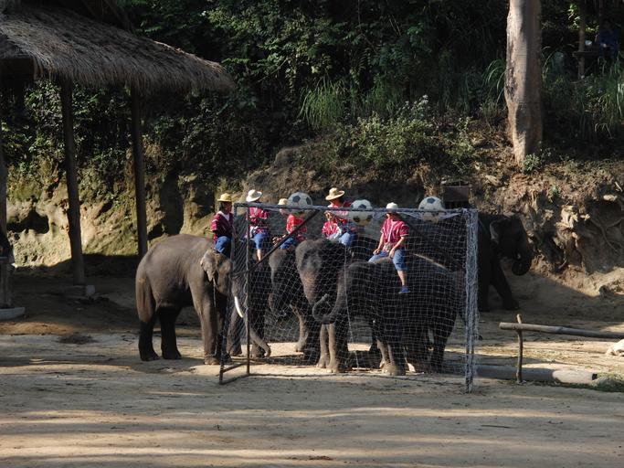 Keywords: elephant tropics football football team elephant soccer thailand asia asian elephant proboscis herd of elephants mammals trumpet pachyderm animals play ball game