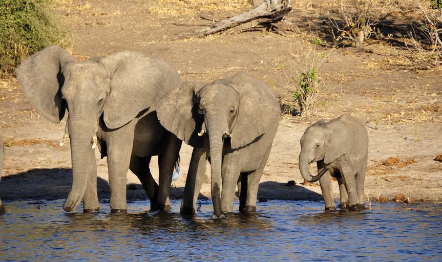 Keywords: elephant water elephant elephant calf family drink river water chobe botswana africa animal wild safari green grey