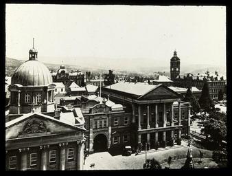 Keywords: Elevated view, government or municipal buildings and town square.jpg Looking down on cluster of government buildings with view of coat of arms on the main building In the foreground there is a partial view of a square with statue; car parked in front of the main building with view of adjoining gardens possibly in Cape Town or Pretoria IT IS IN PIETERMARITZBURG circa 1920 “ ca 1930 1 lantern slide glass Size cm 8 1 8 1 Institution State Library of Victoria object history exhibition history credit line Photographer unknown Undated but circa 1920 “1930 Title taken from provenance file accession number H92 339/57 place of creation SLVIC-digitalimage 95355 H92 339/57 This work is out of copyright No copyright restrictions apply <br>http //www slv vic gov au/about-us/plans-policies/copyright-library-items/do-i-need-librarys-permission-well-copyright-owners- Copying digitised material from the Library's collections You may find digital copies of items from the Library's collections such as photographs or recorded interviews on the Library's website and online catalogue Where this material is out of copyright it may be freely used provided the Library and the creator are acknowledged; however the Library does not endorse any inappropriate or derogatory use Custom license marker 2014 08 07 PD-Australia PD-US Uploaded with UploadWizard Lantern slides of South Africa South Africa in the 1920s Reliefs of British coats of arms in foreign countries KwaZulu-Natal Legislature Pietermaritzburg Town Hall History of Pietermaritzburg |
