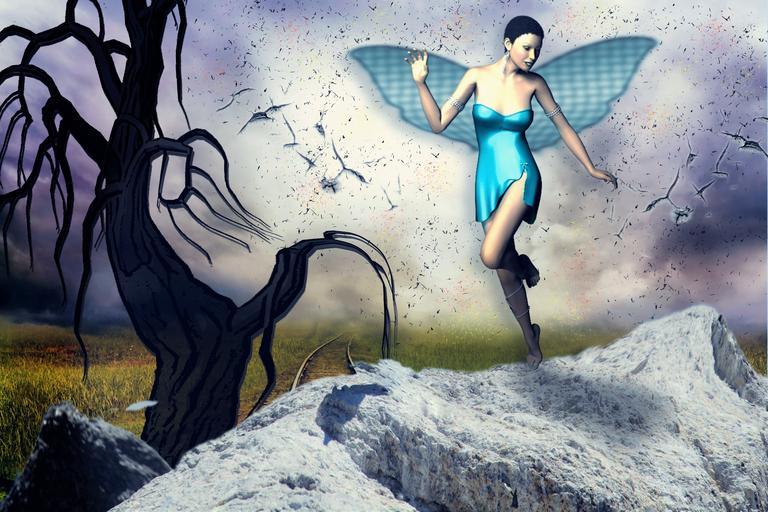 Keywords: elf background tree rock fantasy mystical fairy tales