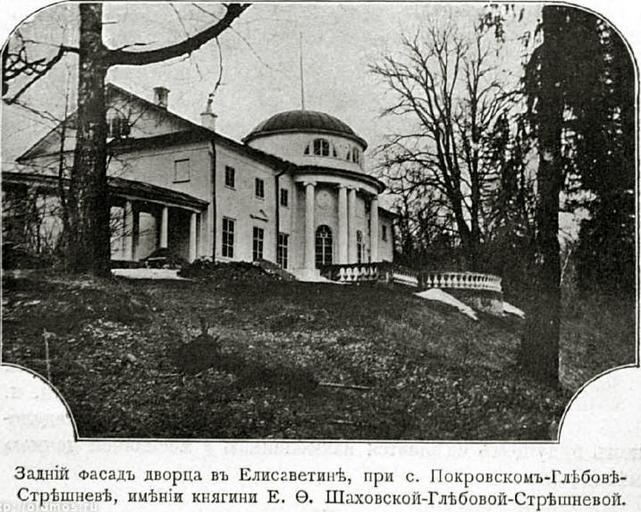 Keywords: Elisavetino.jpg До еволюционная отк ытка с изоб ажением подмосковной усадьбы Елизаветино http //saoirse-2010 livejournal com/19429 html thread 163045 1907 anonymous PD-RusEmpire Pokrovskoye-Streshnevo estate Palladian architecture in Russia