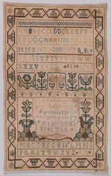 Keywords: Elizabeth Ann Herpin Andrew - Sampler - Google Art Project.jpg 1749 1817 Elizabeth 4175002 Ann Herpin Andrew 1749 - 1817 /collection/cooper-hewitt-national-design-museum/artwork/sampler-elizabeth-ann-herpin-andrew/6715389/ 75354 Elizabeth Ann Herpin Andrew /artist/elizabeth-ann-herpin-andrew/6839181/ 6839181 /collection/cooper-hewitt-national-design-museum/ Cooper-Hewitt National Design Museum 3644669 http //www cooperhewitt org/ /collection/cooper-hewitt-national-design-museum/artwork/sampler-elizabeth-ann-herpin-andrew/6715389/ 1755 1755 Medium silk embroidery on linen foundationTechnique embroidered in cross stitch on plain weave foundation ex coll Mrs Henry E Coe Eva Johnston Coe 6715389 False 1755 1941-69-44 http //collection cooperhewitt org/view/objects/asitem/id/75354 Bequest of Mrs Henry E Coe Sampler 1750 1760 1755 False 0 62890625 Object sampler-elizabeth-ann-herpin-andrew Sampler s E S Bolton and E J Coe American Samplers Boston The Massachusetts Society of the Colonial Dames of America 1921 p 30 H x W 40 x 27 cm 15 3/4 x 10 5/8 in Elizabeth Ann Herrin Andrews 6 years 10 days October the 17th Anno Domini 1755 Medium silk embroidery on linen foundationTechnique embroidered in cross stitch on plain weave foundation ex coll Mrs Henry E Coe Eva Johnston Coe special url_id lQFaRxbffCNX9A PD-old-100-1923 1817 Google Art Project works by Elizabeth Ann Herpin Andrew Textiles in the Cooper “Hewitt Smithsonian Design Museum 1750s samplers Google Art Project works in Cooper-Hewitt Smithsonian Design Museum 1755 works |