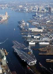 Keywords: Elizabeth River at NNSY.jpg Portsmouth Va Feb 13 2004 “ The nuclear powered aircraft carrier USS Harry S Truman CVN-75 transits the Elizabeth River following completion of a six-month Planned Incremental Availability PIA at Norfolk Naval Shipyard Truman completed her yard period a week ahead of schedule and 4 million dollars under budget http //www news navy mil/view_single asp id 11927 Navy NewsStand Photo ID 040213-N-7412M-001<br />http //www news navy mil/ Navy NewsStand Home 2004-02-13 United States Navy Chief Photographer's Mate Greg McCreash PD-USGov-Military-Navy Rivers of Virginia Elizabeth Taken with Nikon D1X General views of USS Harry S Truman CVN-75