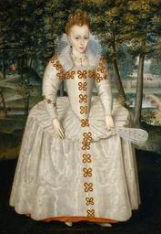 | Keywords: gown Elizabeth, Electress Palatine and Queen of Bohemia (born Elizabeth of Scotland; 19 August 1596 – 13 February 1662) was the eldest daughter of James VI and I, King of England, Scotland, and Ireland, and Anne of Denmark. She was thus sister to King Charles I and cousin to King Frederick III of Denmark. With the demise of the Stuart dynasty in 1714, her direct descendants, the Hanoverian rulers, succeeded to the British throne. Elizabeth was born at Falkland Palace, Fife.[1] At the time of her birth, her father was still the King of Scots only. She was named in honor of the Queen of England, in an attempt by her father to flatter the old queen, whose kingdom he hoped to inherit. During her early life in Scotland, Elizabeth's governess was the Countess of Kildare.[1] When Elizabeth was six years old, in 1603, Elizabeth I of England died and James succeeded to the thrones of England and Ireland. When she came to England, she was consigned to the care of Lord Harington, with whom she spent the years of her happy childhood at Combe Abbey in Warwickshire. Part of the intent of the Gunpowder Plot of 1605 was to kidnap the nine-year-old Elizabeth and put her onto the throne of England (and, presumably, Scotland) as a Catholic monarch, after assassinating her father and the Protestant English aristocracy. Among Elizabeth's suitors was King Gustavus Adolphus of Sweden, but she was eventually betrothed to the Elector Palatine in 1612. On 14 February 1613, she married Frederick V, then Elector of the Palatinate in Germany, and took up her place in the court at Heidelberg. Frederick was the leader of the association of Protestant princes in the Holy Roman Empire known as the Evangelical Union, and Elizabeth was married to him in an effort to increase James's ties to these princes. In 1619, Frederick was offered and accepted the crown of Bohemia. Elizabeth was crowned Queen of Bohemia on 7 November 1619, three days after her husband was crowned King of Bohemia.[2] Frederick's rule was extremely brief, and thus Elizabeth became known as the "Winter Queen." She was also sometimes called "Queen of Hearts" because of her popularity. Driven into exile, the couple took up residence in The Hague, and Frederick died in 1632. Elizabeth remained in Holland even after her son, Charles I Louis, regained his father's electorship in 1648. Following the Restoration of the English and Scottish monarchies, she travelled to London to visit her nephew, Charles II, and died while there. Elizabeth's youngest daughter, Sophia of Hanover, had in 1658 married the future Elector of Hanover. The Electress Sophia became the nearest Protestant relative to the English, Scottish and Irish crowns (later British crown). Under the English Act of Settlement, the succession was settled on Sophia and her issue, so that all monarchs of Great Britain from George I are descendants of Elizabeth. Elizabeth, Electress Palatine and Queen of Bohemia (born Elizabeth of Scotland; 19 August 1596 – 13 February 1662) was the eldest daughter of James VI and I, King of England, Scotland, and Ireland, and Anne of Denmark. She was thus sister to King Charles I and cousin to King Frederick III of Denmark. With the demise of the Stuart dynasty in 1714, her direct descendants, the Hanoverian rulers, succeeded to the British throne. Elizabeth was born at Falkland Palace, Fife.[1] At the time of her birth, her father was still the King of Scots only. She was named in honor of the Queen of England, in an attempt by her father to flatter the old queen, whose kingdom he hoped to inherit. During her early life in Scotland, Elizabeth's governess was the Countess of Kildare.[1] When Elizabeth was six years old, in 1603, Elizabeth I of England died and James succeeded to the thrones of England and Ireland. When she came to England, she was consigned to the care of Lord Harington, with whom she spent the years of her happy childhood at Combe Abbey in Warwickshire. Part of the intent of the Gunpowder Plot of 1605 was to kidnap the nine-year-old Elizabeth and put her onto the throne of England (and, presumably, Scotland) as a Catholic monarch, after assassinating her father and the Protestant English aristocracy. Among Elizabeth's suitors was King Gustavus Adolphus of Sweden, but she was eventually betrothed to the Elector Palatine in 1612. On 14 February 1613, she married Frederick V, then Elector of the Palatinate in Germany, and took up her place in the court at Heidelberg. Frederick was the leader of the association of Protestant princes in the Holy Roman Empire known as the Evangelical Union, and Elizabeth was married to him in an effort to increase James's ties to these princes. In 1619, Frederick was offered and accepted the crown of Bohemia. Elizabeth was crowned Queen of Bohemia on 7 November 1619, three days after her husband was crowned King of Bohemia.[2] Frederick's rule was extremely brief, and thus Elizabeth became known as the "Winter Queen." She was also sometimes called "Queen of Hearts" because of her popularity. Driven into exile, the couple took up residence in The Hague, and Frederick died in 1632. Elizabeth remained in Holland even after her son, Charles I Louis, regained his father's electorship in 1648. Following the Restoration of the English and Scottish monarchies, she travelled to London to visit her nephew, Charles II, and died while there. Elizabeth's youngest daughter, Sophia of Hanover, had in 1658 married the future Elector of Hanover. The Electress Sophia became the nearest Protestant relative to the English, Scottish and Irish crowns (later British crown). Under the English Act of Settlement, the succession was settled on Sophia and her issue, so that all monarchs of Great Britain from George I are descendants of Elizabeth. |