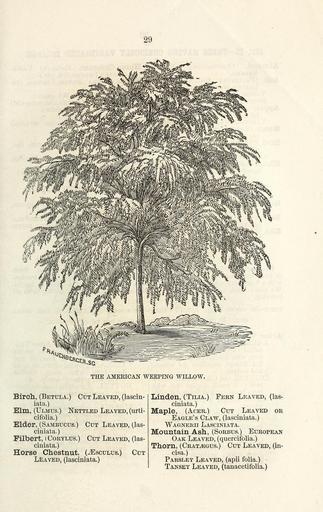 | Keywords: Ellwanger and Barry's descriptive catalogue of ornamental trees and shrubs, roses, flowering plants, etc., etc., etc (16436563552).jpg 29 <br> THE AMERICAN WEEPING WILLOW <br> Birch Betula Cut Leaved lascin- <br> iata <br> Elm Ulmus Nettled Leaved urti- <br> cifolia <br> Elder Sambucus Cut Leaved las- <br> ciniata <br> Filbert Corylus Cut Leaved las- <br> ciniata <br> Horse Chestnut sculus Cut <br> Leaved lasciniata <br> Linden Tilia Fern Leaved las- <br> ciniata <br> Maple Acer Cut Leaved or <br> Eagle's Claw lasciniata <br> Wagnerii Lasciniata <br> Mountain Ash Sorbus European <br> Oak Leaved quercifolia <br> Thorn Crataegus Cut Leaved in- <br> cisa <br> Parsley Leaved apii folia <br> Tansey Leaved tanacetifolia 42747616 136502 68419 Page 29 Text http //www biodiversitylibrary org/page/42747616 1868 10 1080/00222930308678875 Ellwanger Barry ; Henry G Gilbert Nursery and Seed Trade Catalog Collection ; Mount Hope Nurseries Biodiversity Heritage Library Ellwanger Barry's descriptive catalogue of ornamental trees and shrubs roses flowering plants etc etc etc Garden Stories Catalogs Ellwanger Barry Nurseries Horticulture Nursery stock Ornamental trees Plants Shrubs U S Department of Agriculture National Agricultural Library bhl page 42747616 dc identifier http //biodiversitylibrary org/page/42747616 American weeping willow bhlGardenStories BHLinbloom ellwanger barry nurseries horticulture u s department of agriculture national agricultural library bhlgardenstories bhlinbloom Information field Flickr posted date ISOdate 2015-02-03 CC-BY-2 0 BioDivLibrary https //flickr com/photos/61021753 N02/16436563552 2015-08-25 01 51 56 cc-by-2 0 PD-old-70-1923 Ellwanger Barry's descriptive catalogue of ornamental trees and shrubs roses flowering plants etc etc etc Photos uploaded from Flickr by Fæ using a script |