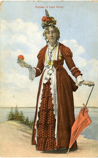 Keywords: costume outdoor Description: Colour photo postcard of Eloise Skimmings, the Poetess of Lake Huron. Object ID : 2014.0059.001 Order a higher-quality version of this item by contacting the Huron County Museum (fee applies). Description: Colour photo postcard of Eloise Skimmings, the Poetess of Lake Huron. Object ID : 2014.0059.001 Order a higher-quality version of this item by contacting the Huron County Museum (fee applies).