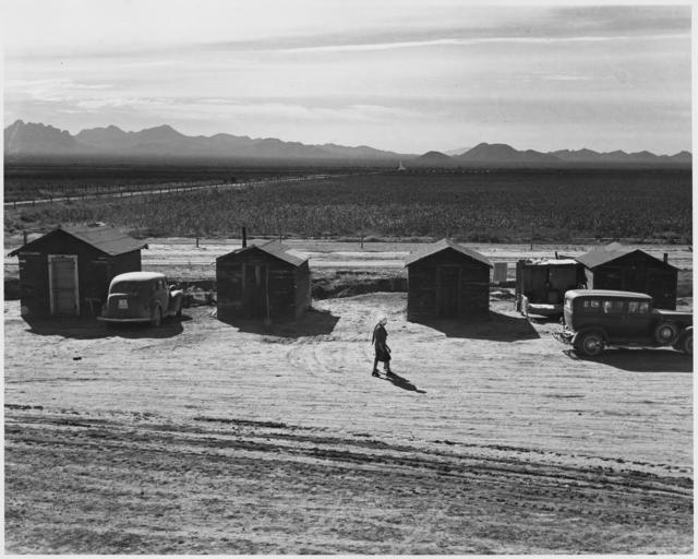 | Keywords: Eloy District, Pinal County, Arizona. This camp has 8 lumber shacks, 12 tents (without floors), 2 to . . . - NARA - 522027.jpg Scope and content Full caption reads as follows Eloy District Pinal County Arizona This camp has 8 lumber shacks 12 tents without floors 2 toilets 2 water faucets Note cotton fields across the road Note another cotton camp in the distance General notes 522027 Local identifier 83-G-41822 Department of Agriculture Bureau of Agricultural Economics Division of Economic Information ca 1922 - ca 1953 NARA-Author Lange Dorothea 1895-1965 Photographer 1372774 <br /> Still Picture Records Section Special Media Archives Services Division NWCS-S National Archives at College Park 8601 Adelphi Road College Park MD 20740-6001 11/1940 Record group Record Group 83 Records of the Bureau of Agricultural Economics 1876 - 1959 Record group ARC 412 Photographic Prints Documenting Programs and Activities of the Bureau of Agricultural Economics and Predecessor Agencies compiled ca 1922 - ca 1947 documenting the period ca 1911 - ca 1947 Series ARC 521048 File unit File unit ARC Variant control numbers NAIL Control Number NWDNS-83-G-41822 Other versions <gallery> File Eloy_District _Pinal_County _Arizona _This_camp_has_8_lumber_shacks _12_tents_ without_floors _2_to_ _ _ _-_NARA_-_522027 tif tif File Eloy_District _Pinal_County _Arizona _This_camp_has_8_lumber_shacks _12_tents_ without_floors _2_to_ _ _ _-_NARA_-_522027 jpg jpg </gallery> NARA-cooperation PD-USGov Dorothea Lange Eloy Arizona |